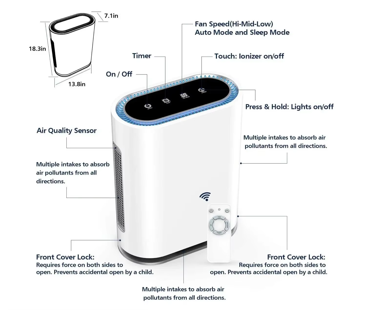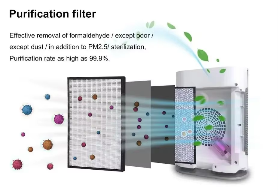 HEPA filter can remove more than 99.97% particles whose diameter is 0.03 mm (about 1/200 of the hair diameter).