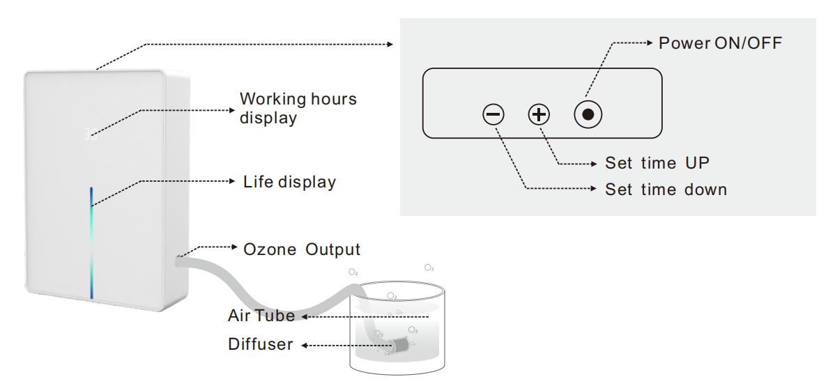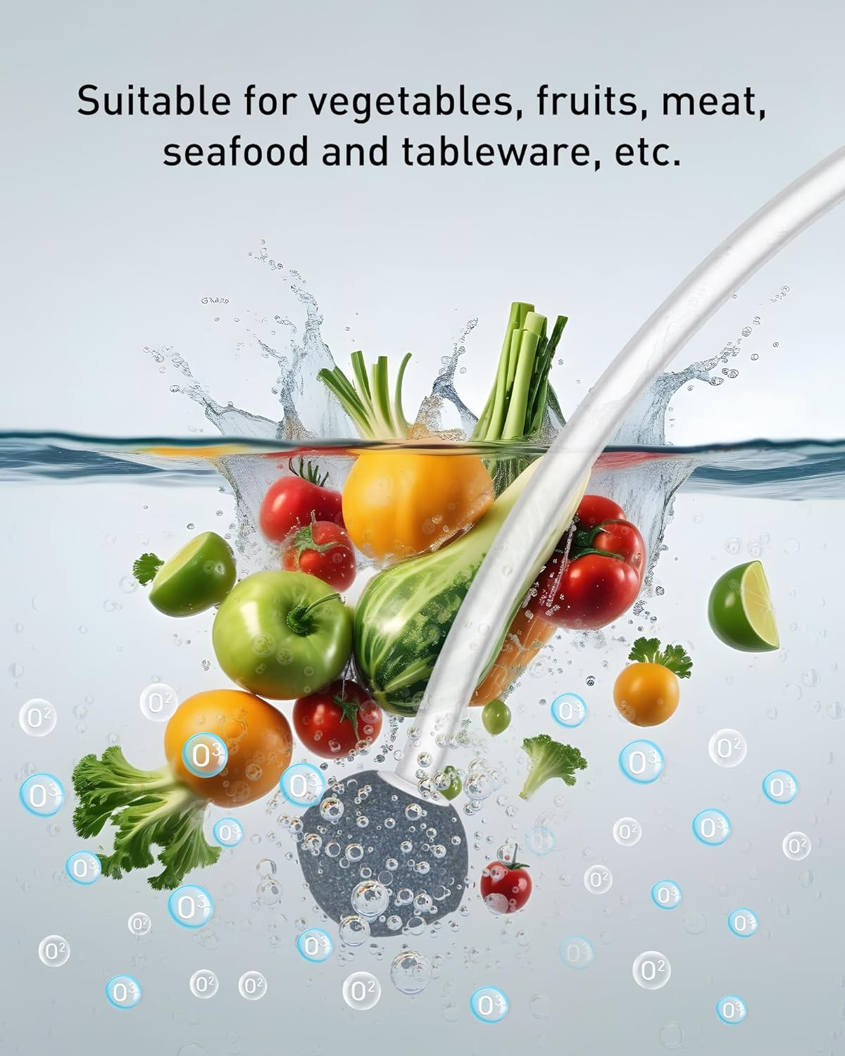 - Washes Food (Fruits/Veg): Effortlessly create ozonated water to thoroughly wash fruits and vegetables. This natural process helps remove pesticides, bacteria, and surface contaminants, giving you greater confidence in the safety of your fresh produce.