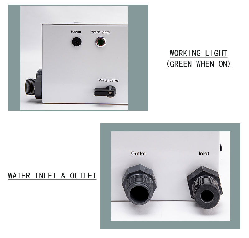 Water inlet / outlet Diameter1/2" (optional: 3/4" via adaptor)