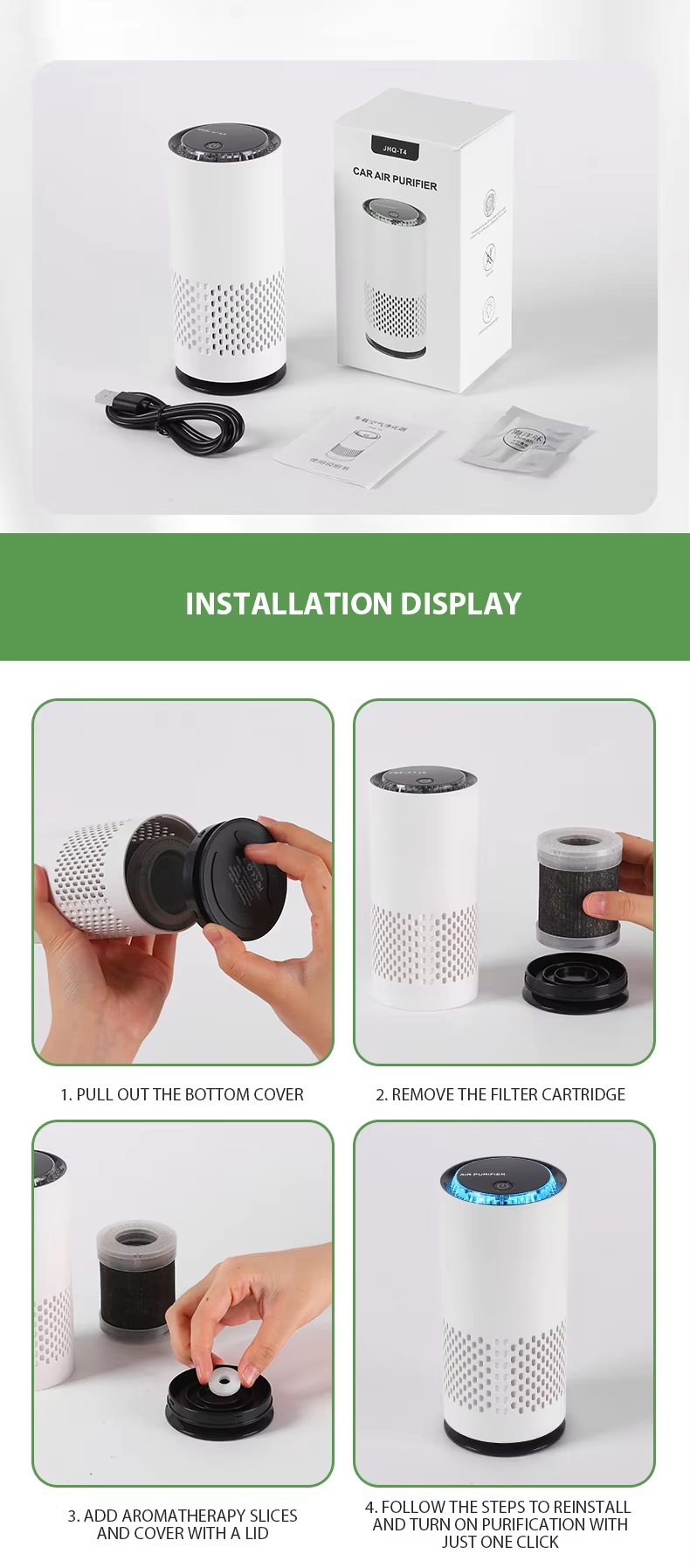 - Package Includes: 1x Air Purifier, 1x USB Cable, User Manual
