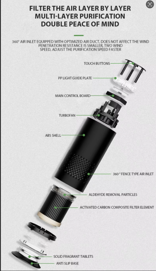 - Whisper-Quiet & Efficient: Engineered for silent operation, it cleans your air without disrupting conversations, phone calls, or your favorite music. Enjoy a continuous flow of purified air, making every journey healthier and more pleasant for you, your family, and pets.